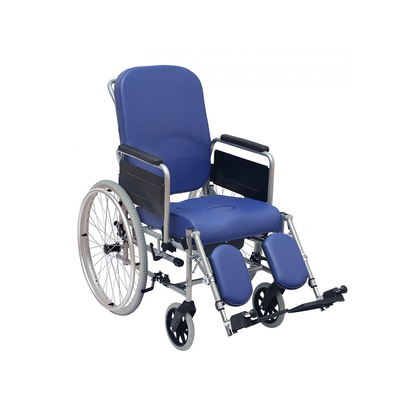 Carrozzina ad autospinta e transito con schienale reclinabile e prolungabile con poggiatesta di serie. Telaio piegh…